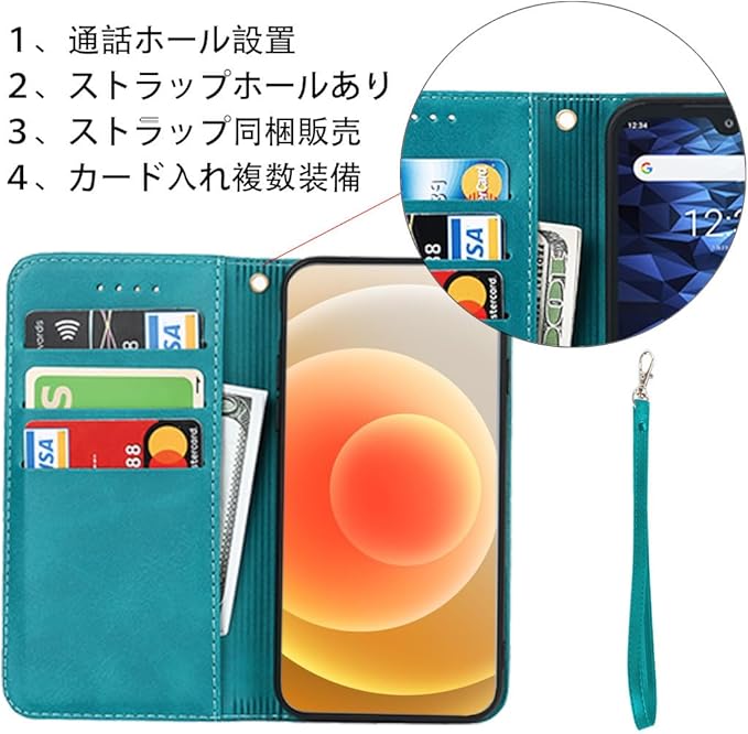適用 Google Pixel 4A 5G ケース 手帳型 PUレザー ストラップ 同梱 カード収納 スタンド機能 耐衝撃 グーグル ピクセル4A5G スマホケース 手帳 Pixel4A5g case カバー 財布型 内蔵マグネット 弱磁 ストラップホール 携帯カバー レトロ ターコイズ