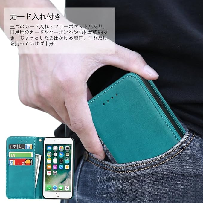 【機能性②】:マグネット内蔵のタイプです、使用上、指への支障も無くなって、一見からするととてもシンプルな感じがします。精密な縫製技術を重ねて出来上がった手帳型で、二重カバーのデザインにより、大切な携帯をキズ、汚れ、衝撃からしっかりと保護できます。