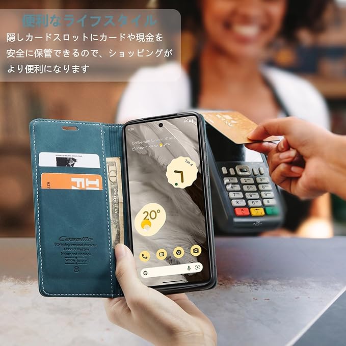 【対応機種】Google Pixel 7A 専用 手帳型ケースで、PUレザーのサイドマグネット式で楽に開閉できます。