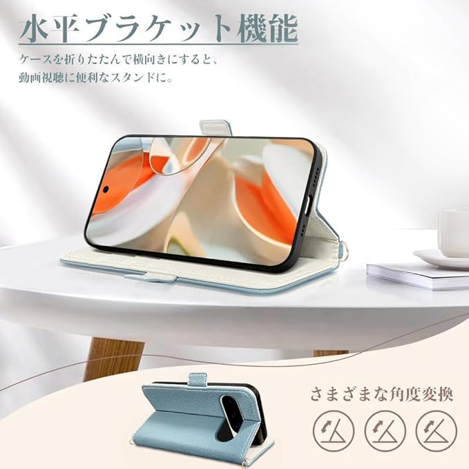 Kahper for Google Pixel 9/Pixel 9 Pro 5G ケース 手帳型 おしゃれ グーグル ピクセル9 / 9Pro ケース 手帳型 可愛い スマホケースGoogle Pixel 9 Pro マグネット式 ピクセル9 手帳型ケースカード収納 スタンド機能 Pixel 9 カバー 擦り傷防止 高級PUレザー 軽量耐衝撃 全面保護 放熱性 人気 女性(ブルー メ アイボリー)
