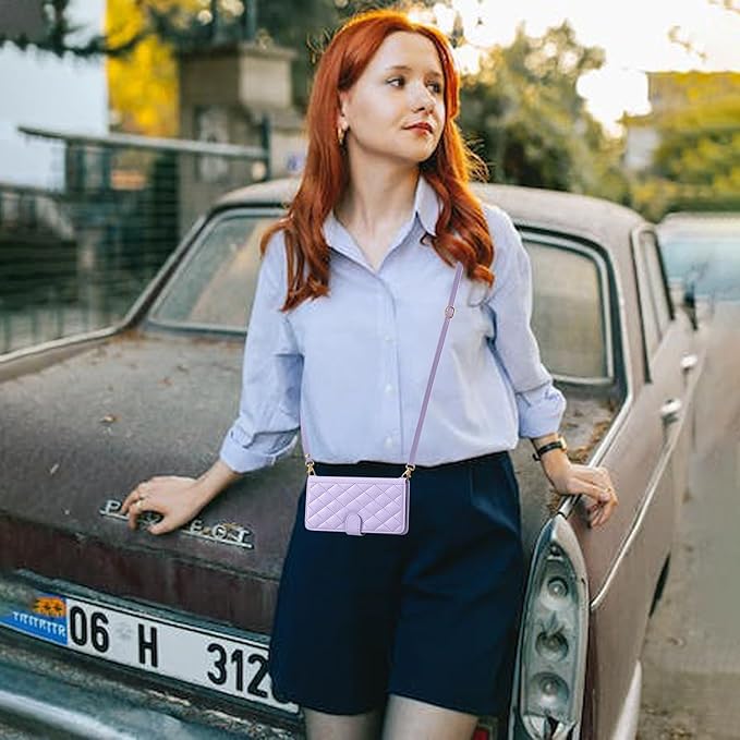 FOR pixel 9a ケース google pixel 9a ケース 手帳型 おしゃれ ストラップ付き スタンド機能 カード収納 軽量 薄型 耐衝撃 高級PUレザー 滑り防止 財布型 内蔵マグネット 開閉式 チェック柄 上質 耐摩擦 マグネット式 肩掛け 斜め掛けーパープル