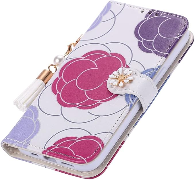 Google pixel 9A ケース 手帳型 花柄 プリントローズ ツバキ 2025モデル おしゃれ 真珠のタッセル 薄型 軽量 スタンド機能 カード収納 ぐーくるぴくせる9A ケース 手帳型 かわいい 大人 マグネット 携帯カバー Google pixel 9A ストラップ付き 女性に向け ピンク