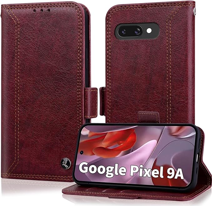 for Google Pixel 9A ケース 手帳型 財布型 グーグルピクセル9A ケース 手帳型 Googleピクセル9A スマホケース 高級PUレザー GooglePixel9Aカバー マグネット カード収納 スタンド機能 耐衝撃 全面保護 手縫い携帯ケース (ワインレッド)