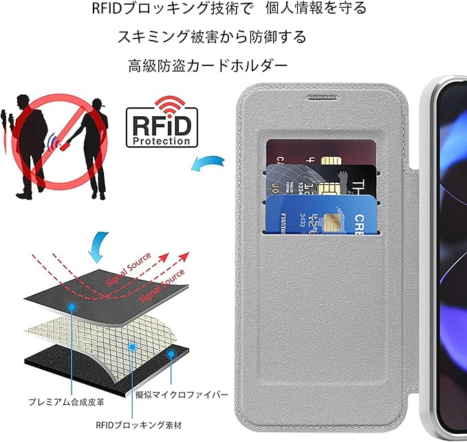 RFIDブロッキング機能により、個人情報の漏洩を防止。 プロ級保護性能