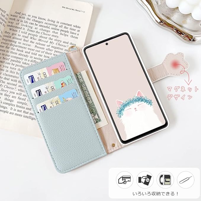 ❀【人気ケース 手帳型と可愛い猫の爪】①大人かわいいスマホケース手帳型の場合はカバーが画面を覆っているため、画面から直接地面に落ちる場合は、スマホの画面を保護してくれるので!②片手操作に特別に設計されています、オリジナルデザインの猫の爪、手触りが滑らかで傷が付きにくく、カラーマッチングも進んで満足感があり③素材は丈夫で手触りも良く本革より耐久性に優れ、清潔もより便利です