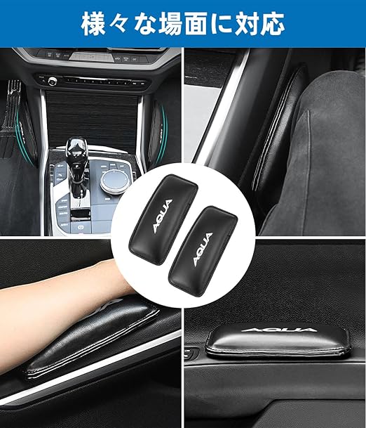 AQUA 車用ロゴ ニーパッド 膝パッド アクア NHP 10系 アクセサリー 運転席 車クッション 疲労軽減 肘置きパッド 滑り止め アームレストカバー 休憩 膝サポート 膝当て 両面テープ PU メモリーコットンコア 通勤 内装パーツ