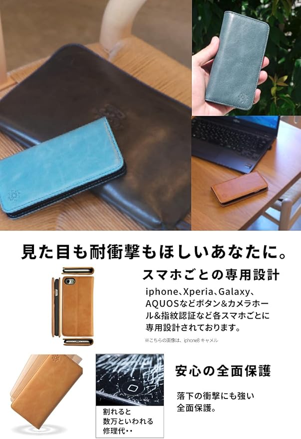 【よくある安っぽい手帳型ケースは嫌!】というあなたにピッタリです! チープなPUレザーケースと違い、本皮仕様ケースは珍しく目立つこと間違いなしです。 落としてスマホ破損が気になる方は、何といっても保護力高い全面を保護する手帳型ケースです。 大切なものが詰まったスマホの保護はこれで決まり!