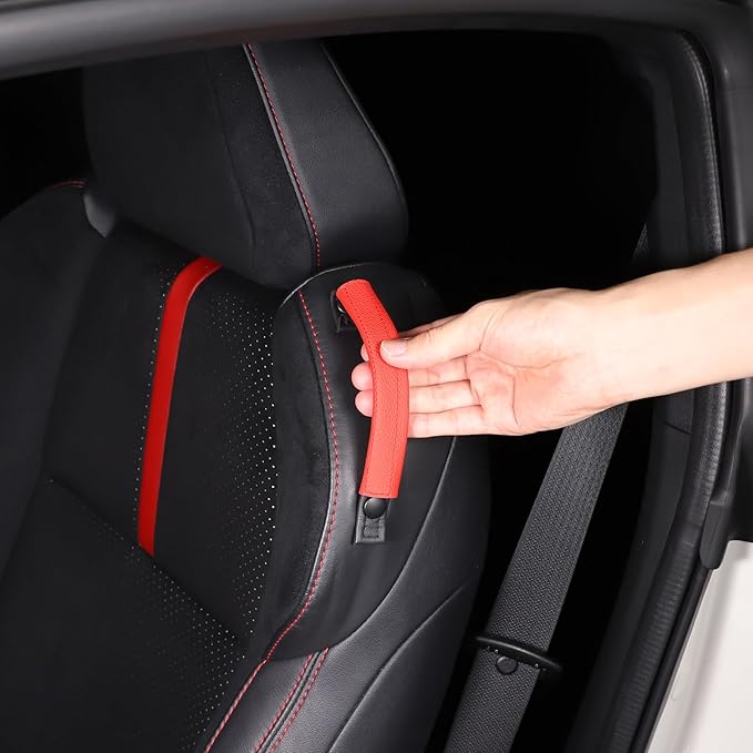 新型 トヨタ 86/スバル BRZ 専用 2022 2023に適用 シートベルト固定保護カバー アームレストカバー シートサイドアームレストカバー シートハンドルカバー 座席側面の引手カバー 座席サイドプルハンドルカバー シートサイドプルハンドルカバー 保護カバー 皮革製 汚れ防止 傷防止 取付簡単 カスタム カー用品 クセサリー 2枚セット(レッド)