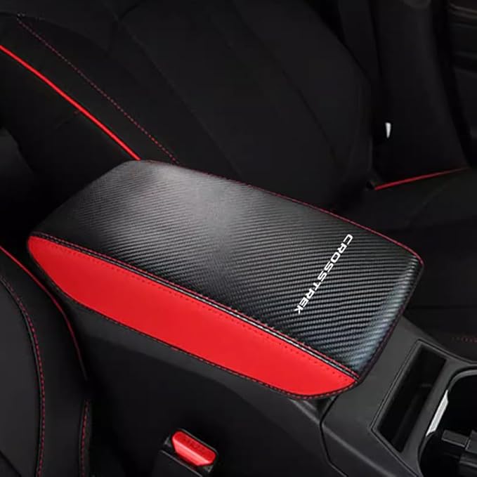 スバル クロストレック GU系 専用 レザーアームレストカバー CROSSTREK センター コンソールボックス カバー 傷 汚れ防止 被せるだけパーツ 内装 カスタム アクセサリー ドレスアップ パーツ (ブラック&レッド)