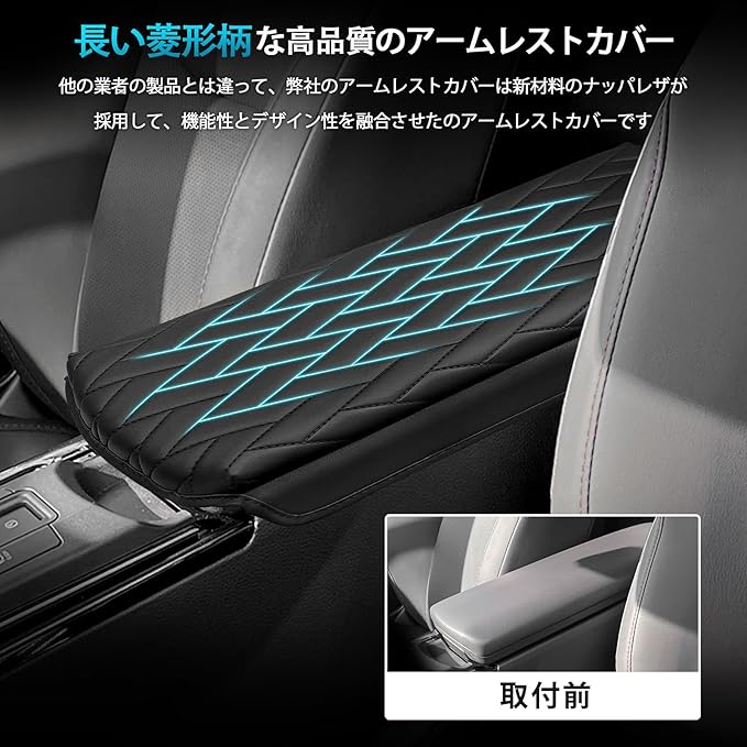 【新型デザイン】 他の業者の製品とは違って、当店のアームレストカバーは2024年高品質PVCレザー&複合スポンジが採用して、柔軟で型崩れしありません。素材が丈夫で壊れにくいので、長く使っても問題ありません。なお、表面は長い菱形柄で、見た目もスタイリッシュで高いデザイン性を誇ります。