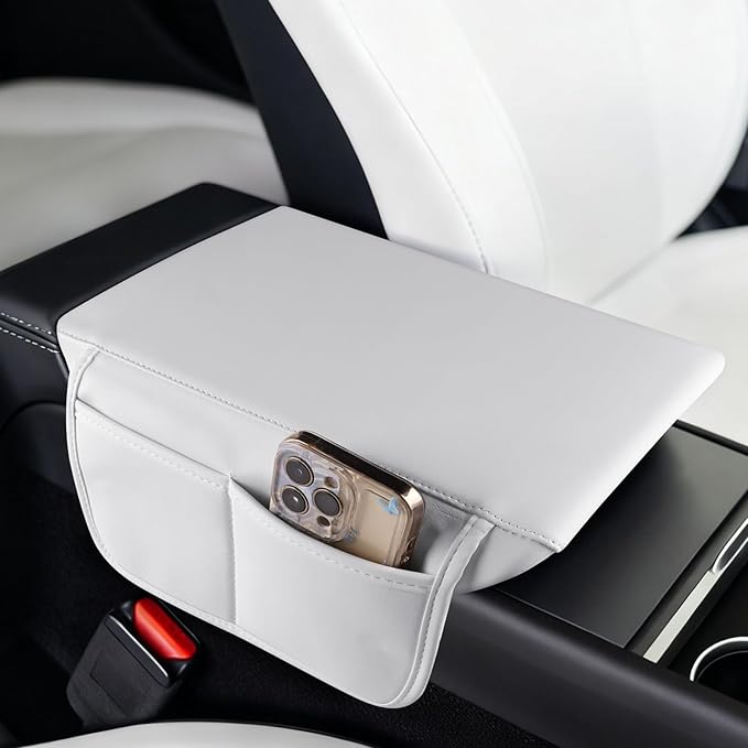 車アームレストカバー 両側 収納ポケット テスラ モデルY モデル3 フロントアームレストボックスカバー カーセンターコンソールカバー 傷防止 インテリアパネル レザー ABS 材質 Tesla Model Y Tesla Model 3 アクセサリー (白, Model Y Juniper/Model 3 highland (2025年~現行))