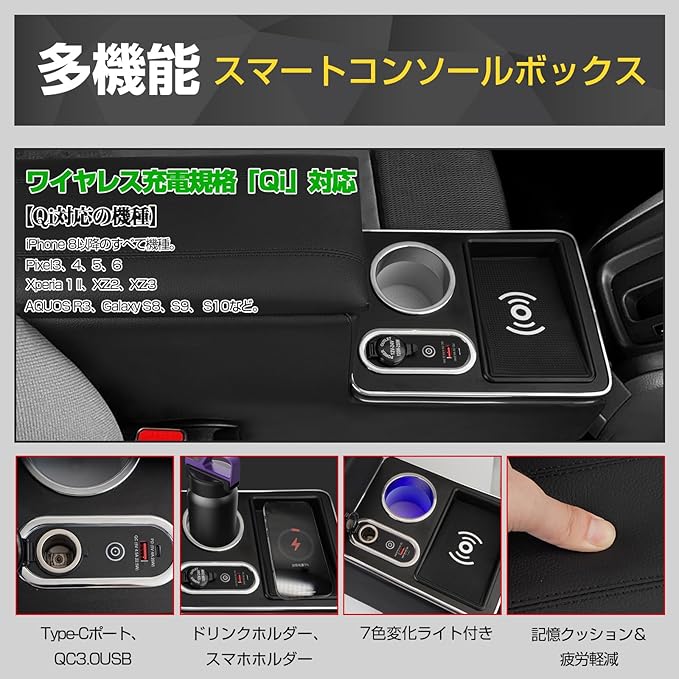 WALKEY 【ワイヤレス充電 7色変換】コンソールボックス 新型 ノア ヴォクシー 90系 適用 車 アームレスト ハイブリッド ガソリン 車 S-Z/Z S-G/G 専用 センターコンソールボックス スマートコンソール 肘置き Type-C QC3.0 USBポート ドリンクボルダー付き 小物入れ 多機能 収納便利