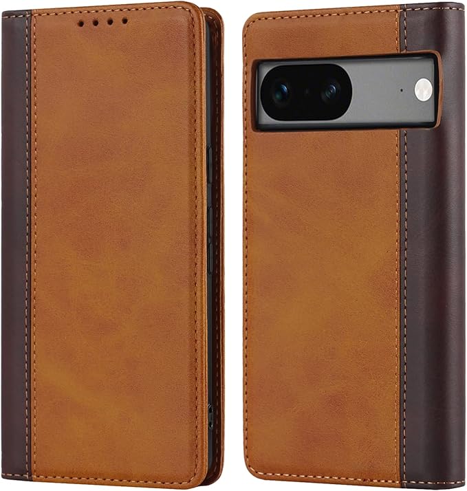 Havaya 対応 Pixel 7a ケース グーグルピクセル7a ケース Google Pixel 7a ケース 手帳型 docomo スマホケース au 耐衝撃 SoftBank カバー カード収納 スタンド機能 フェイクレザー-イエロー+ブラウン