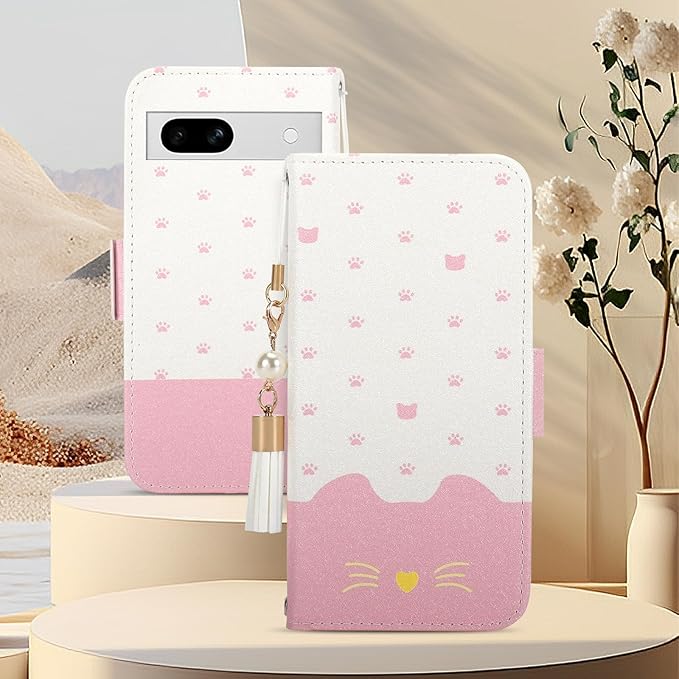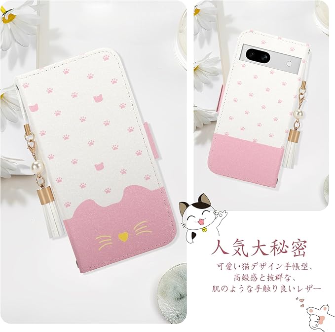 Google Pixel 8a 手帳型 ケース - TPU スタンド機能 カード入れ収納 式ピンク
