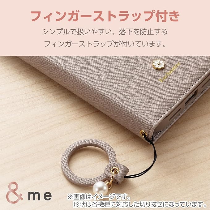 ■かわいいフェイクパール付きデザインの、落下を防止するフィンガーストラップが付属しています。