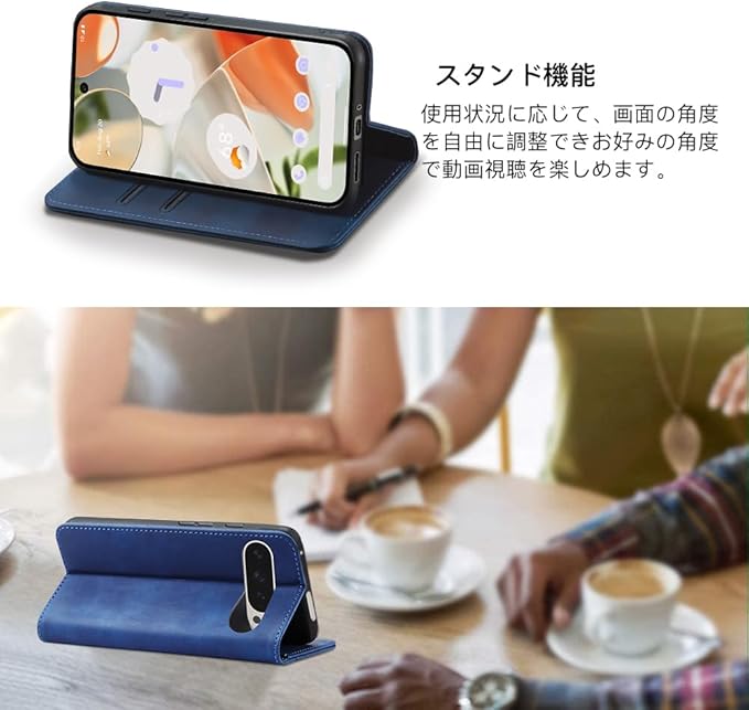 Leaisan Google Pixel 9/Pixel 9 Pro ケース 手帳型 Google Pixel 9 ケース 手帳型 スマホケース レザー マグネット Google Pixel 9 Pro ケース 手帳型 カード収納 い スタンド機能 全面保護 携帯カバー 手帳ケース - ブルー