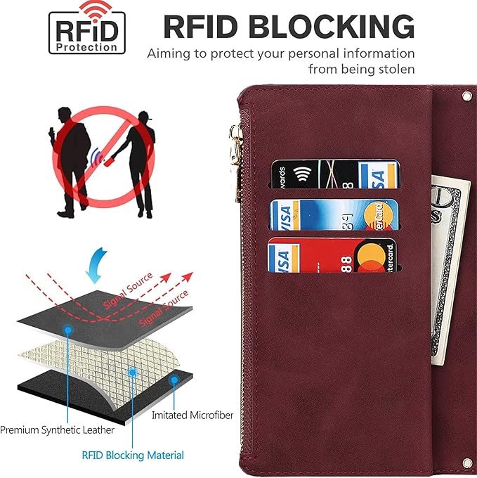 【チャック付き多機能財布型ケース】 内側に9つカードポケット、カード、車券と名刺なは便利にカードスロットに挿入することができます、にお札、小銭などはサイドポケットに挿入できます。ヘッドセット、鍵、コイン、小銭などはファスナー付きのポケットに入れることができます。財布型ケースとして、名刺やお札などを入れるカードポケットがつき、外出活動や日常生活に便利。