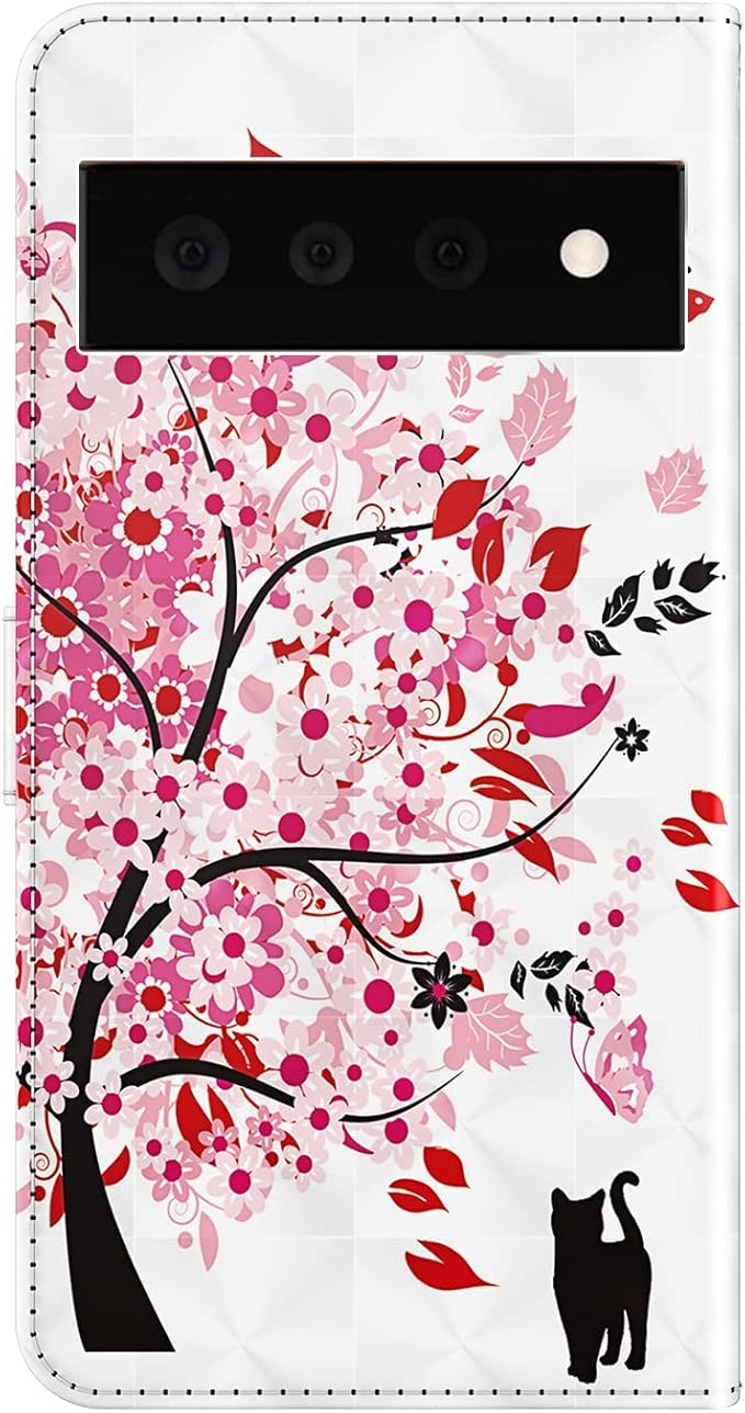 Google Pixel 7a 用 ケース 手帳型 おしゃれ 可愛い 3D プリント 絵柄 ストラップ 付き OYIME 派手な色柄 優雅 カバー 横開き マグネット カード収納 耐衝撃 滑り防止 キラキラ スマホケース グーグルピクセル 7a 手帳型ケース PUレザー 携帯カバー (猫と木)