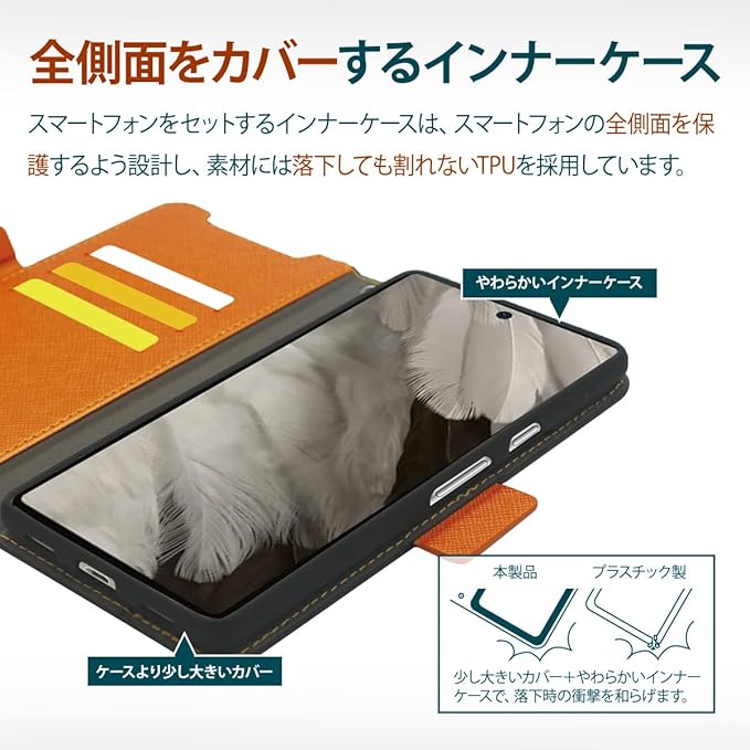 【全側面をカバーするインナー】… インナーTPUケースは、スマートフォンの側面、上部、下部まで保護できるように設計しております。