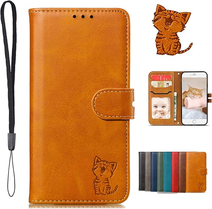 【ユニークなデザイン】シンプルながらも機能性も備わったデザインです。型押しの可愛い猫のモチーフと上品なレザーの組み合わせるケースであり、それに上下に二つのストラップ穴もあり、お好きなタッセルとストラップとかお付けられます、簡単こそクラッシクの上品を引き出せる、手作りの高級感ある色合いでちょっぴり大人なスマホケース。学生にも相応できるし、ワンポイントは笑顔猫であり、この手帳型ケースをギフトとしても最適です。