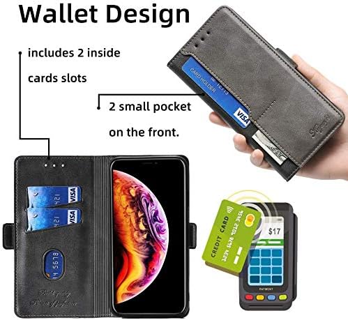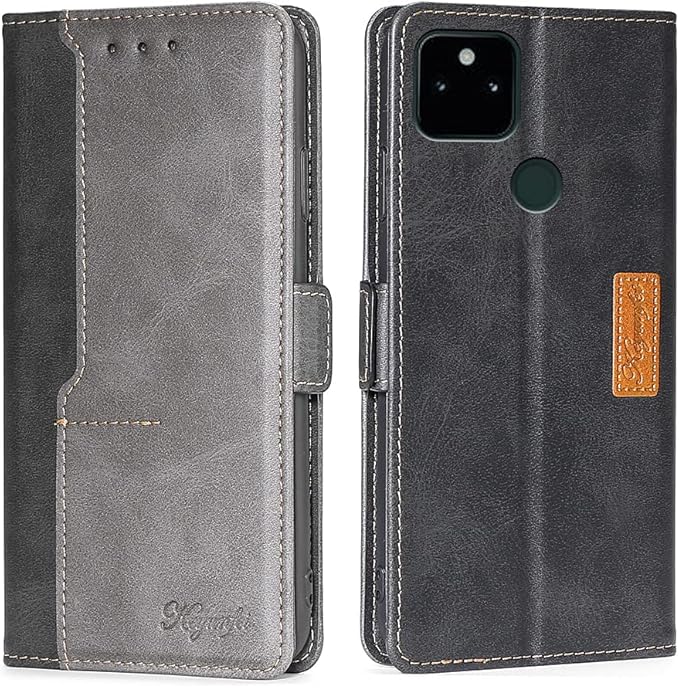 Google Pixel 5A 5G ケース 手帳型 Google Pixel 5A 5G 手帳 ケース マグネット式スタンド機能 カード収納 軽量 落下防止 衝撃吸収 全面保護 財布型 折り畳み式 横置き機能 携帯カバー Google Pixel 5A 5G スマホケース (ブラック+グレー)