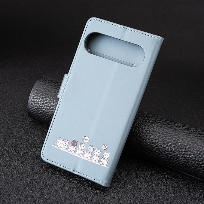 case for Google pixel 9/ 9 Pro 通用カバー グーグル ピクセル9/ 9 Pro ケース 手帳型 かわいい 猫 【MOMO1】マグネット開閉式 カードポケット付き 横開きスタンド 財布型 全面保護 (B2-ブルー, に適用するGoogle pixel 9/ 9 Pro通用)