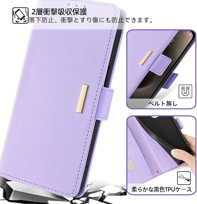 Google Pixel9 ケース Pixel 9 Pro ケース グーグルピクセル 9 ケース ショルダー ストラップ付き pixel 9 カバー スタンド機能 カード収納 耐衝撃 リストストラップ付き ピクセル9プロ ケース おしゃれ 女性 pixel 9pro スマホケースのあるメタルバックル google pixel 9/pixel 9pro ケース 手帳型 - ライトパープル