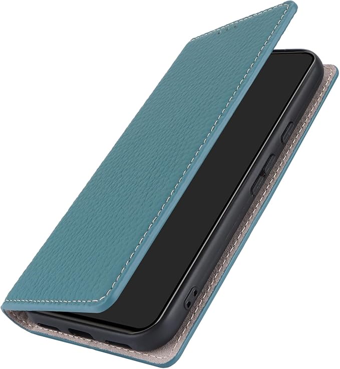 Eastwave for Pixel 8A ケース 本革 牛革 for google pixel8A ケース 手帳型 Pixel 8A カバー Case 手帳 本革 柔らかい 本皮 スプラットホール付き スプラット同梱 内蔵マグネット - ライトブルー