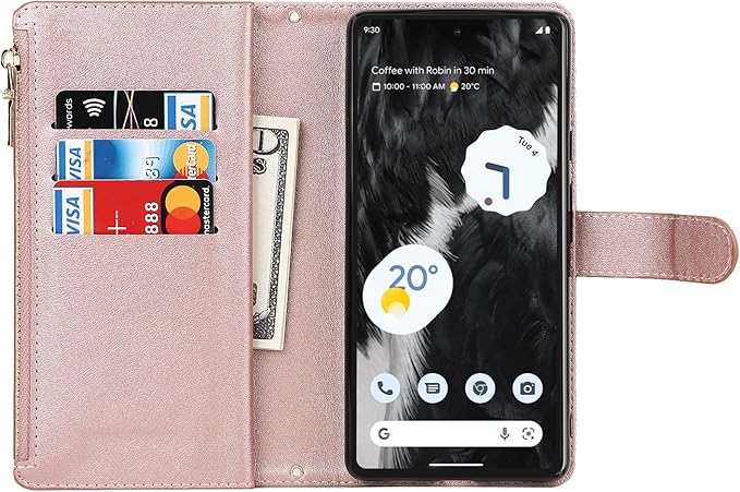 Eastwave for Google Pixel 7A ケース for pixel 7a google 縄掛けケース Pixle7A 手帳型 財布型 ICカード コインポケット ストラップ付き カード 収納 小銭入れ ファスナーポケット付き PUレザー 6色ピンク
