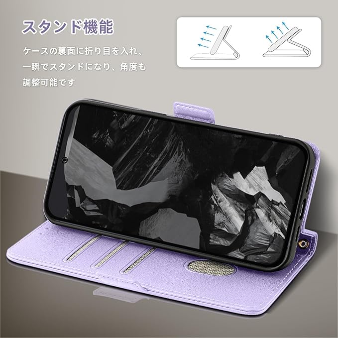 コンパチブル Google Pixel 8a ケース 手帳型 グーグル ピクセル8A 用 高級PU レザーケース カバー スマホケース 財布型 カード収納 マグネット カメラ保護 横置きスタンド機能 ストラップ付き 耐摩擦 耐衝撃 全面保護(Google Pixel 8a 対応 パープル)
