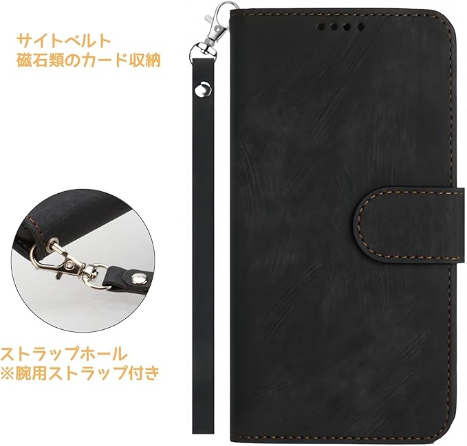 TPU素材のソフト手帳カバーがやわらかく手に馴染み、操作時に安定感のあるグリップを実現しています。ストラップホール付きなので、落下防止対策を施したり、好きなアクセサリーを付けたりすることも可能です。