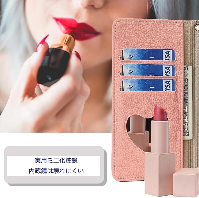 Google Pixel 8A ケース グーグル ピクセル 8A ケース Google Pixel 8A カバー CNEVISON Google Pixel 8A ケース手帳型 化粧鏡付き 首掛け ストラップ カード収納 スタンド機能 ストラップ付き 肩掛ショルダー 耐衝撃 おしゃれ 高級PUレザー (ピンク, Pixel 8A)