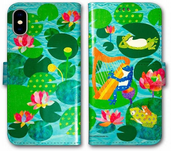 COMOデザイン 手帳型 スマホケース GooglePixel9a互換品 ケース カバー グーグルピクセル9a互換品 スマホカバー 手帳 カード収納 アニマル柄 お昼寝カエル ハープをひくカエル ハスの葉