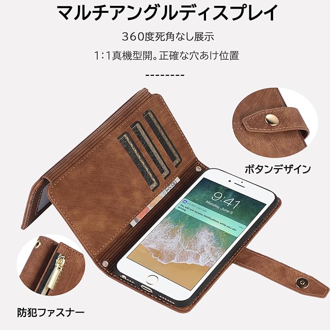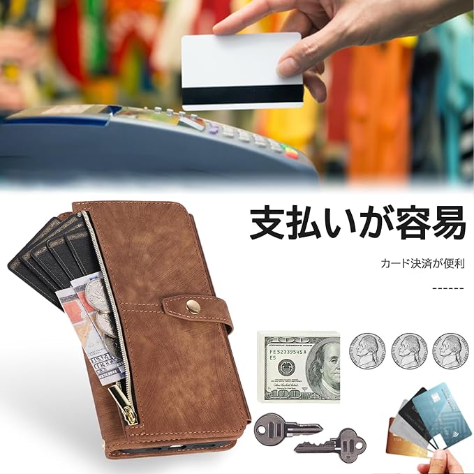 Google Pixel 7Aケース 手帳型 グーグル ピクセル7a ケース 手帳型 つや消し肌感レザー Pixel 7A携帯カバー マグネット開閉 Pixel 7A カバー 多機能 収納 財布カバー ピクセル 7a ケース カード入れ サイドジッパー 横置きスタンド機能 ケース 縄掛け/肩掛け 保護カバー 全面保護防塵耐衝撃横開き 滑り防止(Google Pixel 7a, ブラウン)