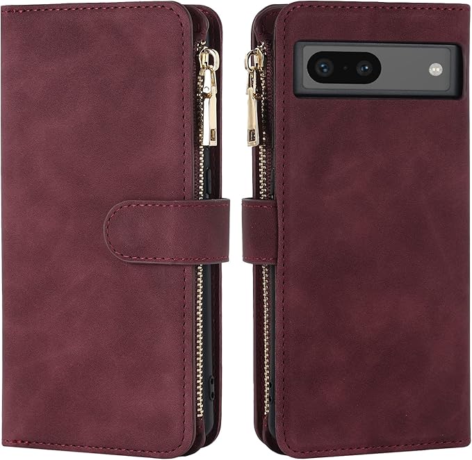 Pelanty for Pixel 7A 縄掛けケース手帳型 携帯カバー 肩掛け斜めがけ ショルダー 合成皮革+TPU マグネット 財布型カバー ICカード お札入れ小銭入れ大容量 収納ポケット スタンド機能 グーグル ピクセル7A 6.1インチ ストラップ付き 落下防止 耐衝撃 全面保護(肩縄付き-ワインレッド)