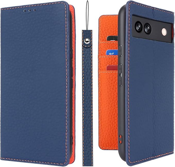 for Pixel 8A ケース 本革 牛革 for google pixel8A ケース 手帳型 Pixel 8A カバー Case 手帳 本革 柔らかい 本皮 スプラットホール付き スプラット同梱 内蔵マグネット - ネイビー