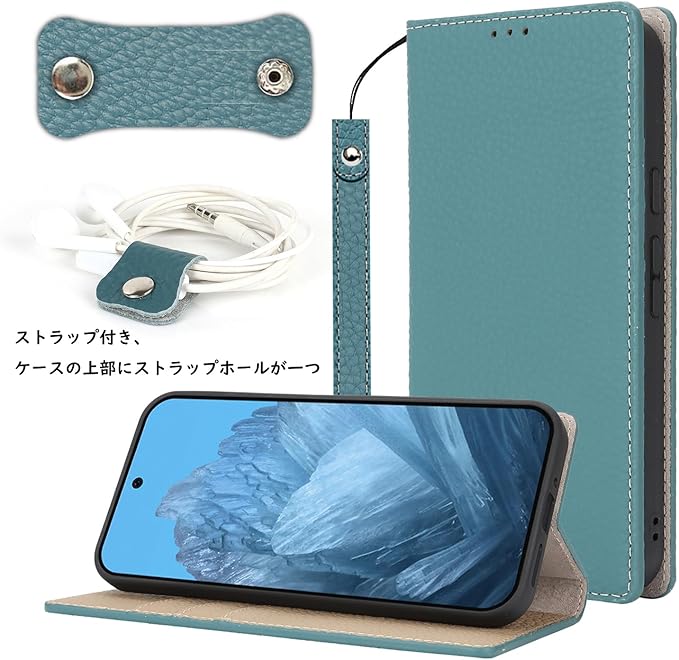 Havaya 対応 Pixel9 pro ケース Pixel9 ケース ピクセル9 ケース 手帳型 本革 ストラップ Google グーグル スマホケース docomo au 耐衝撃 カバー SoftBank カード収納 スタンド機能 レザー -スカイブルー