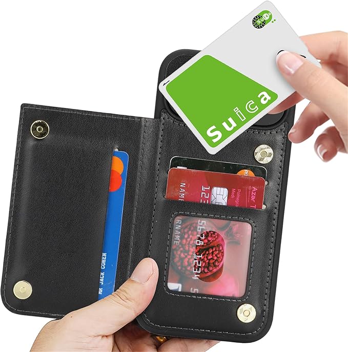 【カード収納】カバーの内側と裏面にお札ポケットとカードスロットを搭載して、カードや名刺やお札などを入れることができます、外出するのに便利です。磁気的に適度なボタンもあります、開閉するのに非常に便利です。