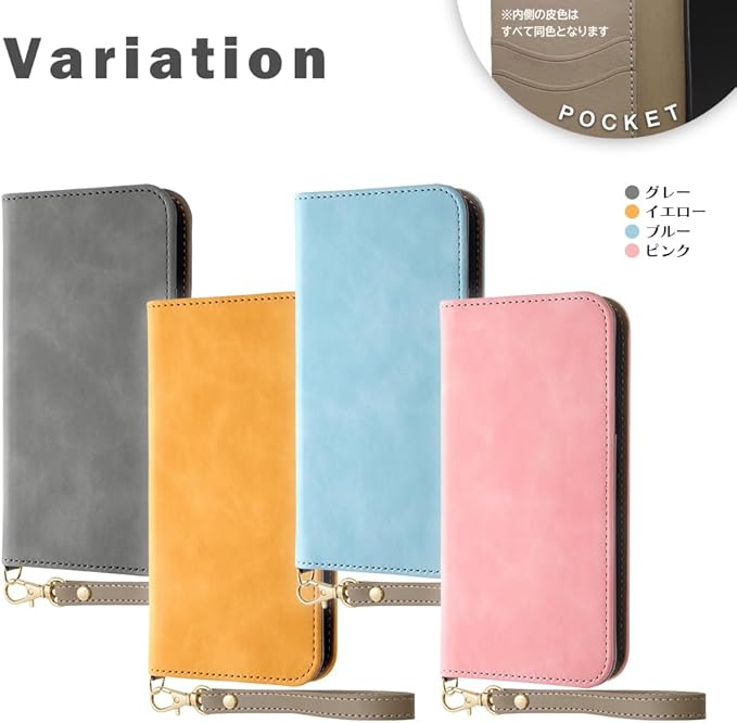 洗練された大人の手帳型ケース 風合いを楽しむムラ染めPUレザー 柔らかな質感 / ケースを付けたままカメラ撮影可能 / カメラ穴 くり抜き カメラ / ケースをつけたまま撮影できる 撮影可能 カメラ撮影に便利 / 収納ポケット付き / レシートなども入れられる大きめの収納ポケット付き / カードポケット 大容量 2枚 3枚 4枚 / ICカード カードケース ポイントカード