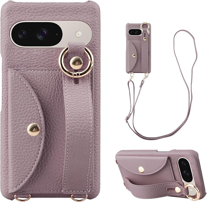Google Pixel 9 / 9 Pro スマホ ケース グーグル ピクセル9 手帳型カバー 肩掛け 斜めがけ ショルダー ケース Pixel9 財布ケース 保護フィルムプレゼント ピクセル 9 プロ PU皮革カバー 可愛い リング付き 背面 カード収納 ぐーぐるぴくせる9 PRO 女性 携帯 カバー 片手操作 スタンド ハンドヘルド 落下防止 赤紫