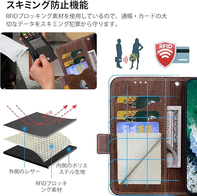 財布の機能:Googlepixel8a ケース 手帳型 フォリオケースには3つのカードスロットと、ID、クレジットカード、現金用のサイドポケットが付いています。強力なマグネット留め具とRFIDブロックにより、カードと現金を安全に保管でき、携帯電話だけを持って旅行できます