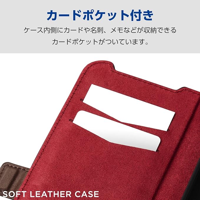 便利な機能を搭載した、革のようなやわらかな風合いのソフトレザーケース(手帳型)です。