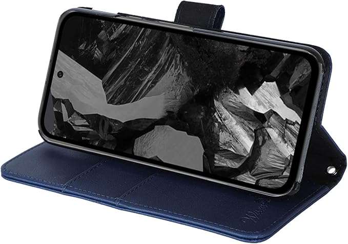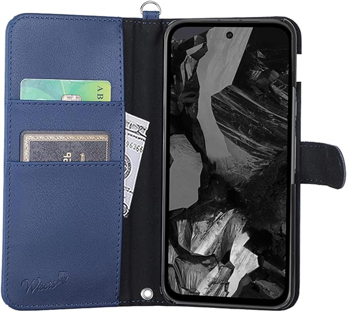 wisers Google Pixel 8a ケース 手帳型 スマホケース 対応 (ダークブルー) (カードホルダー/スタンド機能付き) ストラップ 2種付き (ハンドストラップ/ネックストラップ) 2024年 新型