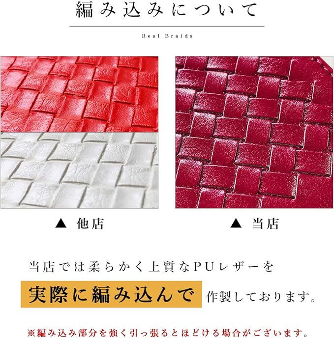 1本1本編込み形成された編み込みが大人の雰囲気漂わせる手帳型ケースです。