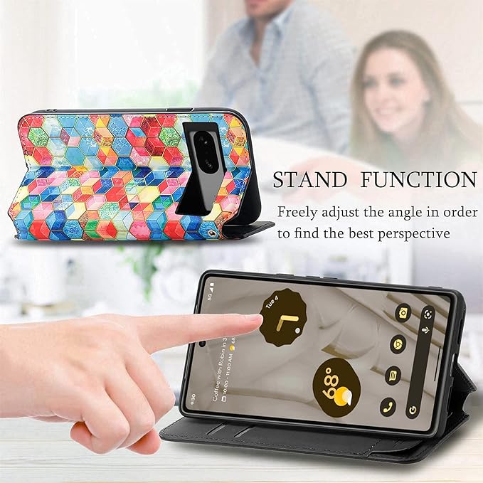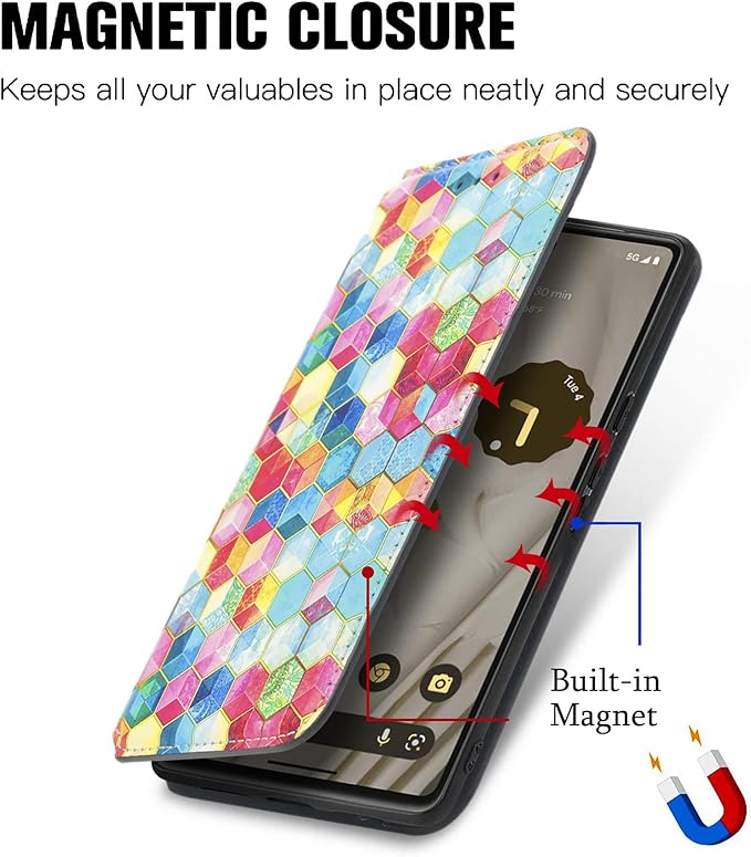 Google Pixel 7A ケース 手帳型 綺麗 かわいい グーグル ピクセル7A ケース ストラップ付き 2枚カード収納 神秘的 カラフル Pixel7A ケース マグネット式 折り畳み式 耐衝撃 レンズ保護 グーグル ピクセル 7A 携帯手帳カバー ストラップ付 (Google pixel 7A, 多彩)