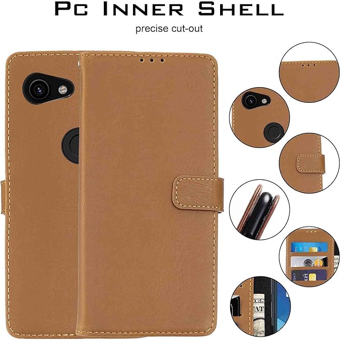 【Anrek】Google Pixel 3a docomo/SoftBank 兼用 ケース 手帳型 カバー (ブラウン) ドコモ ソフトバンク ピクセル3a pixel3a 手帳型ケース カード収納 サイドマグネット スタンド機能付き 全面保護 財布型 PUレザー シンプル ビジネス風Pixel 3a KHAKI