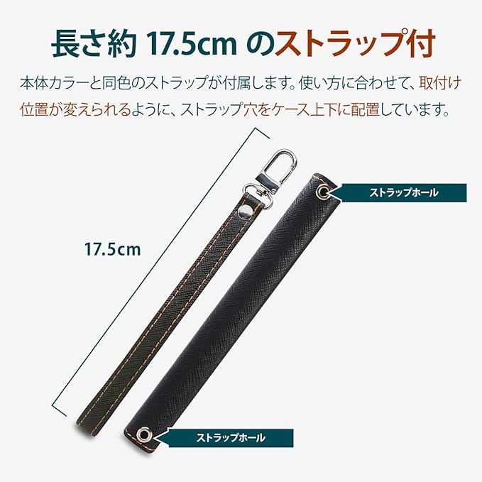 【ストラップ付】… 本体カラーと同色のストラップがついており、取り外しも出来るようになっています。