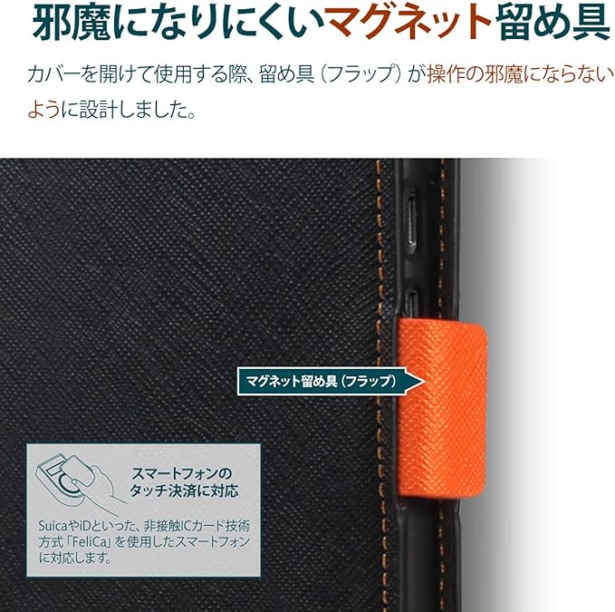 【干渉しにくいマグネット留め具】… マグネット式留め具を開けた際に、留め具が操作に干渉しづらいよう、サイドに配置しております。