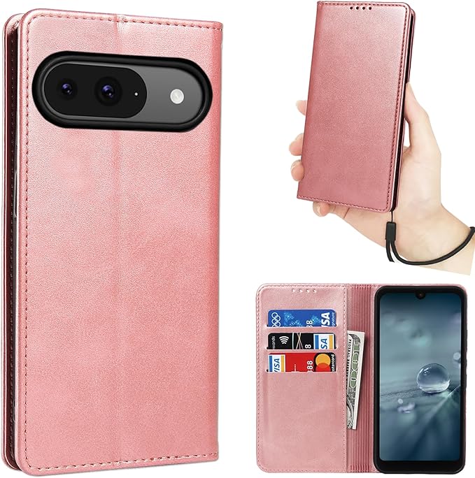 Google Pixel 9 / Pixel 9 Pro ケース 手帳型 【ストラップ 一本付】 適用 グーグル Pixel9 Pixel9Pro ケース Google ピクセル9 手帳型 GooglePixel9 スマホケース ピクセル9プロ case 【Heofuixt】 滑り止め 合成レザー スタンド 手首掛け ハンドストラップ カード入れ マグネット フリップ 落ち着いた色 ピンク