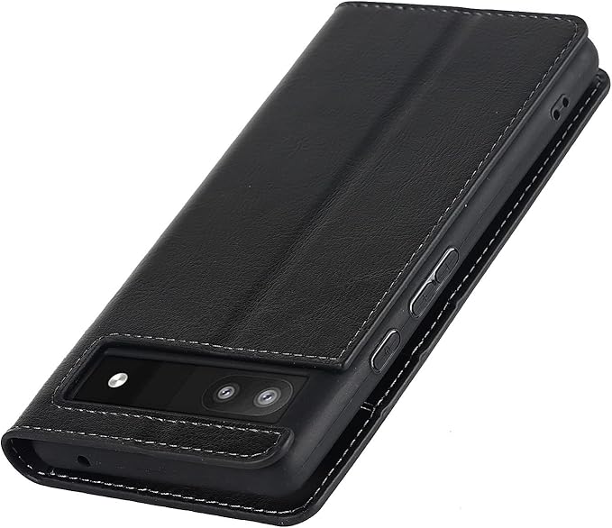 Eastwave for Google Pixel 6A ケース for google pixel6a 手帳型 財布型 カバー 収納ポケット 牛革製品 ポケット収納付き 横置きスタンド機能 落ち着くデザイン オシャレ 4色 ブラック